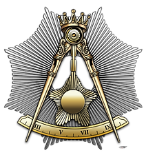The symbol of the Lodge of Perfection (4º-14º) is gold colored and depicts a compasses, open to sixty degrees, resting upon a graduated segment which bears the Roman numerals III, V, VII, IX. Suspended from the hinge is a radiant five pointed star, and on the summit of the compasses is a crown. The compasses remind us that science, united to honor and virtue, made the architects of the temple the companions of kings; and that the men of intellect and learning, the great kings of thought in all ages, should be, as Plato taught, the rulers of the world.